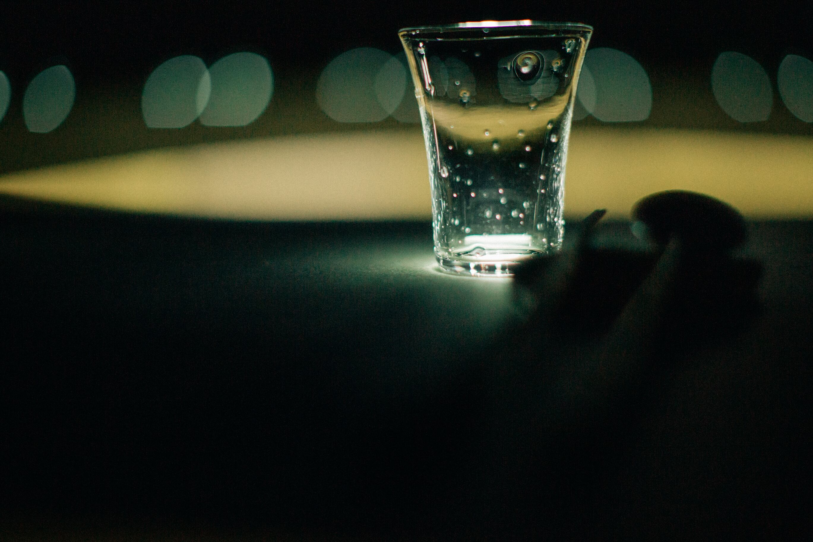 海底から生まれ、そして弾ける泡のように、真珠のような光の玉を内包するグラス。